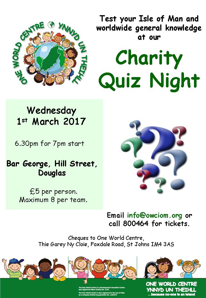How good is your Isle of Man and worldwide knowledge? Come and find out at the One World Centre charity quiz night on Wednesday 1st March.