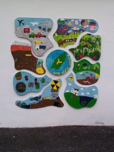 In the Summer Term 2011 all the pupils at St John’s School were involved in the design and painting of a mural to go outside our office. Our Patron, Lord Lieutenant Adam Wood, received the individual pieces from the children and the Forestry Department erected it on our outside wall.